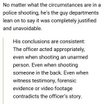 this is really true tho!!! my uncle was a cop in NY & FL and they taught him to shoot first if he had to. anytime a cop feels threatened (and they basically teach cops they’re always threatened) they can shoot. its rlly sick psychological torture shit to help create a police state tbh